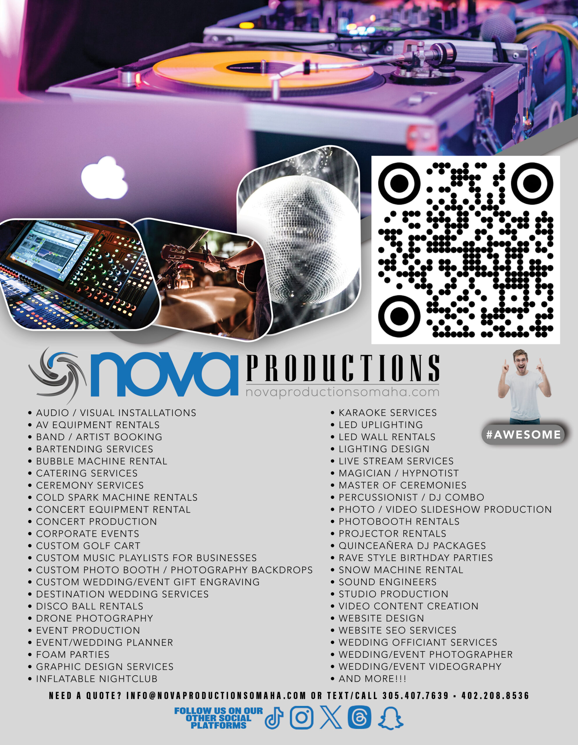 Nova Productions offers a full-scale AV & sound rental library designed to elevate any event. From professional audio systems, lighting, and LED video walls to special effects like cold sparks, lasers, and immersive visuals—we provide the gear, expertise, and support to bring your vision to life. Explore our rental library and build the perfect setup for your next event.